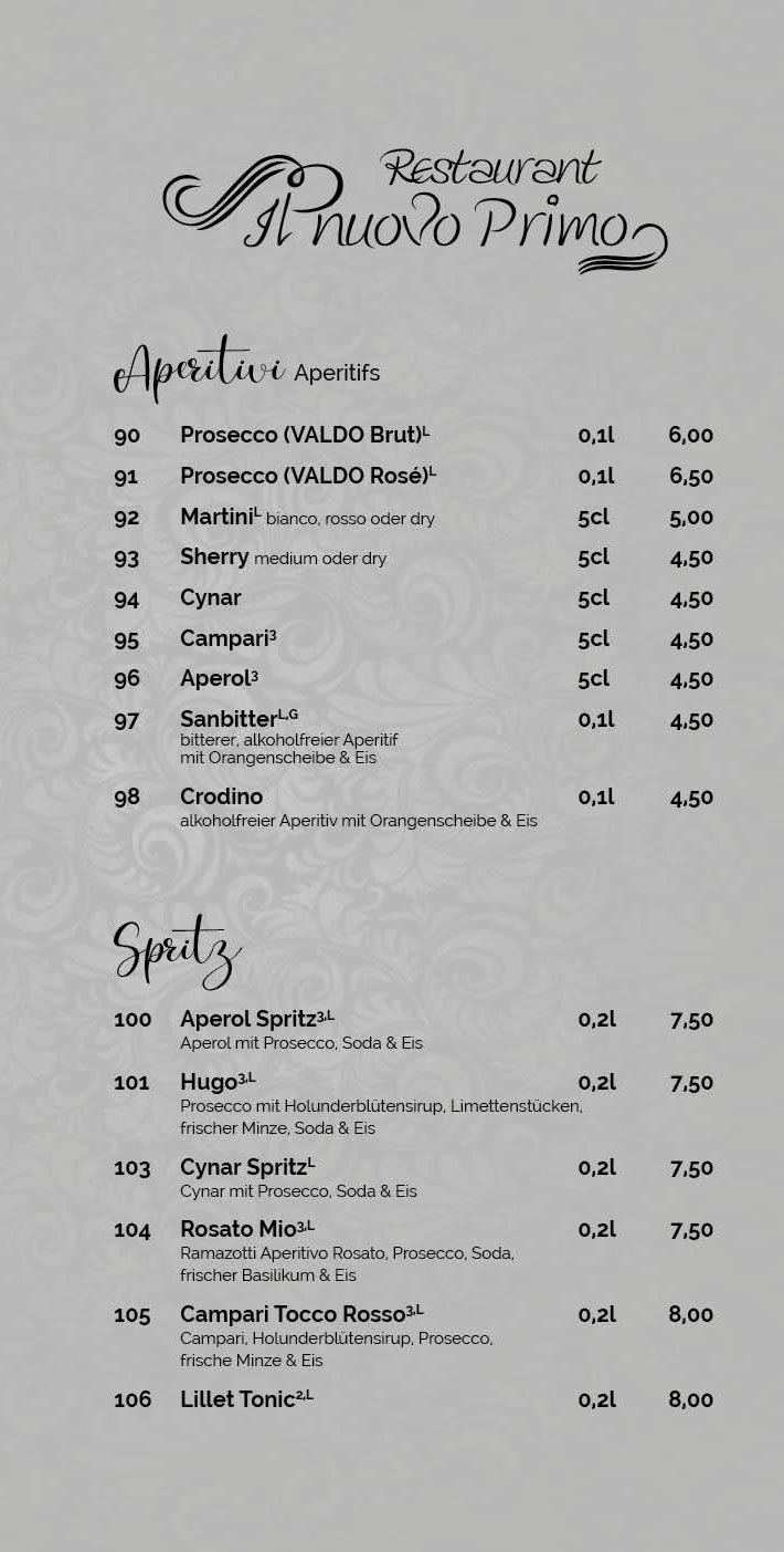 Restaurant Il nuovo Primo in Berlin - Kreuzberg - Speisekarte